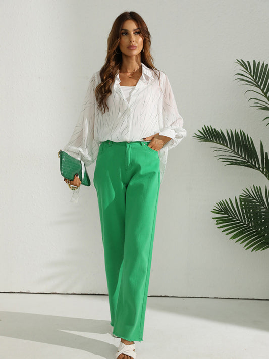 Women’s Lightweight Sheer Collared Button Down Blouse With Minimalistic Design